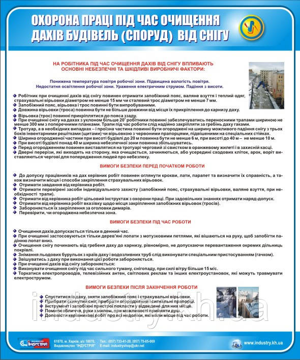 (С-05780/2) Стенд. Охорона праці при очищенні дахів будівель (споруд) від снігу. 0,6х0,5. Пластик