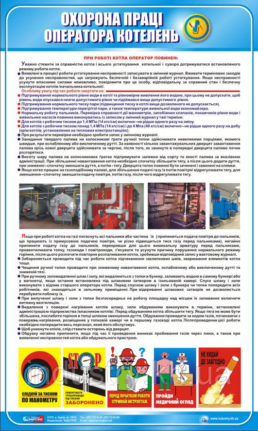 Стенд. Охорона праці оператора котелень. 0,6х1,0. Пластик